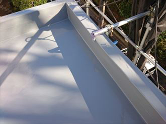 以前から近くにある林からの落葉で木の葉が飛んできて、お困りになっていたという練馬区豊玉のお客様です。屋上の排水口を詰まらせたり、雨樋を詰まらせたりとトラブルがあったようです。今回も雨漏りも同様なことが理由で、起こっているのではないかということでした。点検の結果、陸屋根のシート防水に傷みが発生しており、これが雨漏りの原因になっていました。ウレタン防水で改修します。